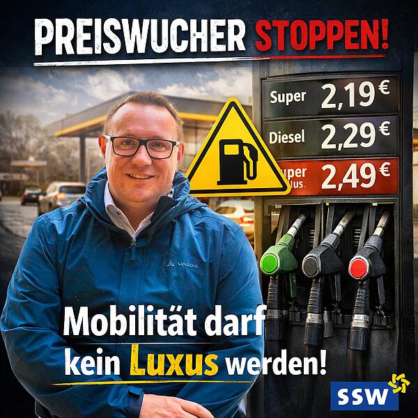 Darüber hinaus regt der SSW-Politiker eine befristete Senkung der Energiesteuer auf Diesel und Benzin an, um für eine deutliche Entlastung zu sorgen. Schließlich bestehe ein erheblicher Teil des Spritpreises aus staatlichen Abgaben. „Wenn die Preise steigen, steigen diese Einnahmen automatisch mit. Wenn die Belastung für die Menschen steigt, dann muss auch der Staat bereit sein, zu entlasten. Denn eines darf nicht passieren: Dass der Staat an steigenden Preisen verdient, während die Bürgerinnen und Bürger immer stärker belastet werden.“